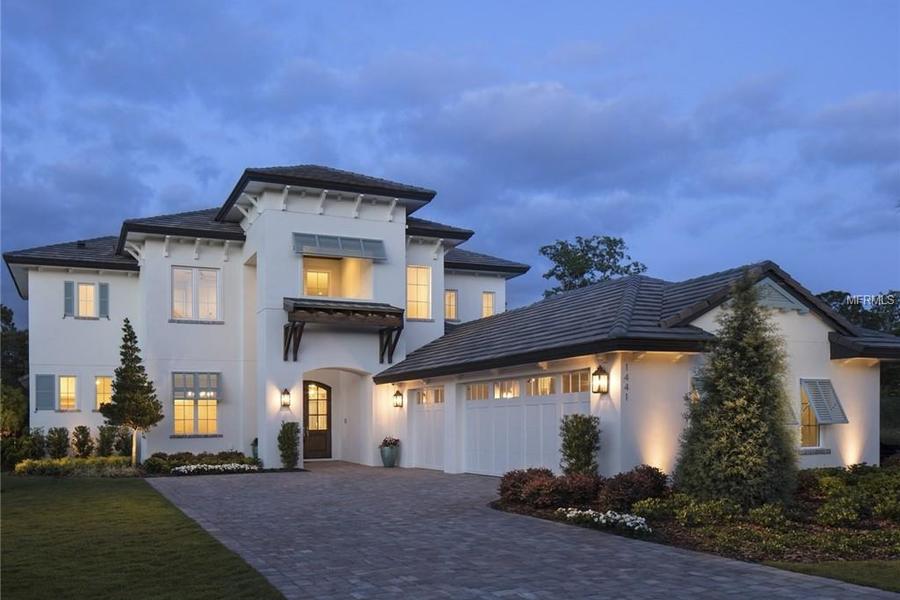 Captivating new home is ideally located in the gated Reserve at Interlachen. These new Coastal style homes combines the finest materials and finishes equating to a classic, timeless design. Step inside where an open stairway highlights the two story volume entry. The study is private and set apart. This open floor plan affords the opportunity for modern living, yielding spaces that allow the family to gather. Abundant natural light defines the family areas featuring hardwood flooring, beamed ceilings, and a rear wall of glass opening to the covered lanai. The gourmet kitchen utilizes function and form with Subzero and Wolfe appliances, quartz countertops, a huge walk in pantry, and custom built cabinetry. Impeccable and stylish with an emphasis on Florida indoor/outdoor living the large covered lanai with summer kitchen is complete with grill and fridge, overlooking the contemporary pool with waterfall feature. A separate cabana with gas fireplace is the perfect spot to relax and reflect. The glass and natural light are carried through to the exceptionally pristine master suite and luxurious master bath including his and hers quartz vanities, a vessel tub, and walk in shower. The upstairs flex space is great for gaming and studying opening to the upper porch. Secondary bedrooms are large and ensuite. Energy saving and organic with low E double-paned windows, tankless hot water heaters, spray foam insulation and many building features to enhance living enjoyment.